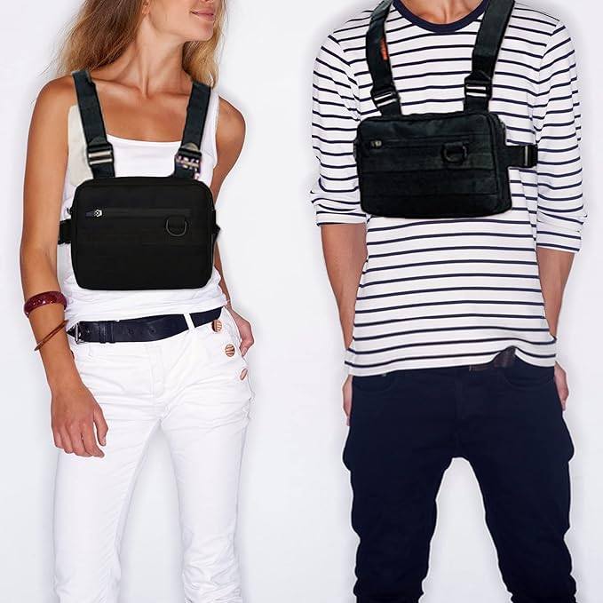 🏃♂️ Movimiento Total: A diferencia de los bolsos que rebotan, este diseño tipo chaleco se ajusta al pecho, permitiéndote correr, saltar o rodar sin molestias.
