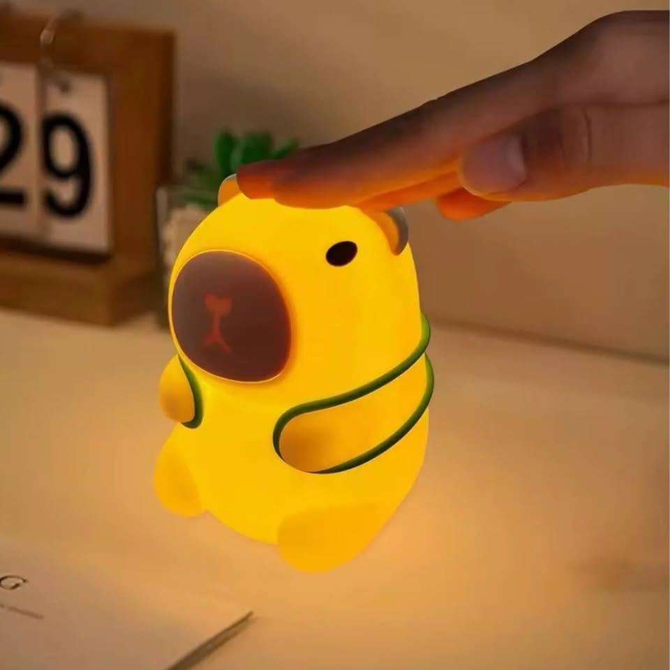 Dale un toque de calma y diversión a tus noches. Esta adorable lámpara de silicona suave tiene la forma del capibara más tierno. No solo ilumina, ¡es apachurrable! Perfecta para decorar, acompañar el sueño de los niños o simplemente para relajarte después de un día largo.